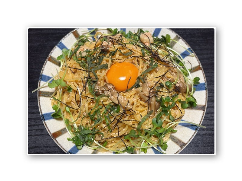 定番の明太子のパスタに海苔と黄身を乗せる発想がありませんでした!