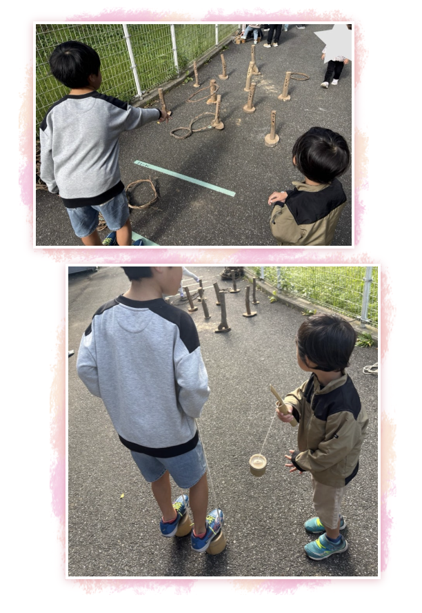 外では、木や竹・どんぐりを使った遊びをしました♪