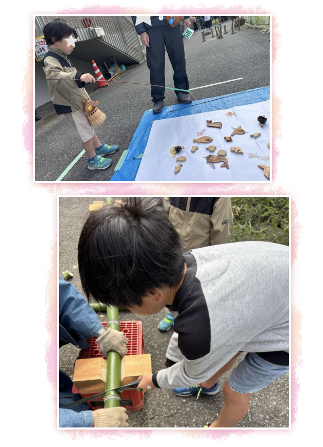 のこぎりで竹を切るという挑戦もできてよかったですね☆