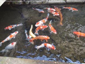 鯉にエサをやると、鯉がめちゃくちゃ集まってきて、