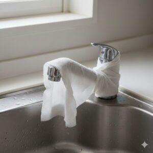 キッチンペーパーにクエン酸水をしみこませて、蛇口にくるっと巻くだけ♪