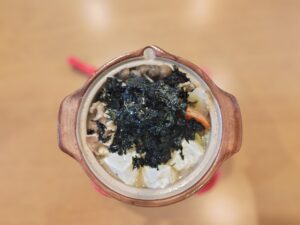 雑炊にも、姿焼きのりをトッピングします。