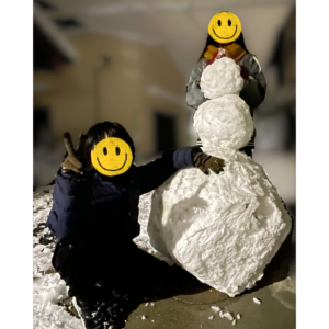 子どもたちは大はしゃぎで雪だるまをつくりました(*´з`)サムクナイノカナ