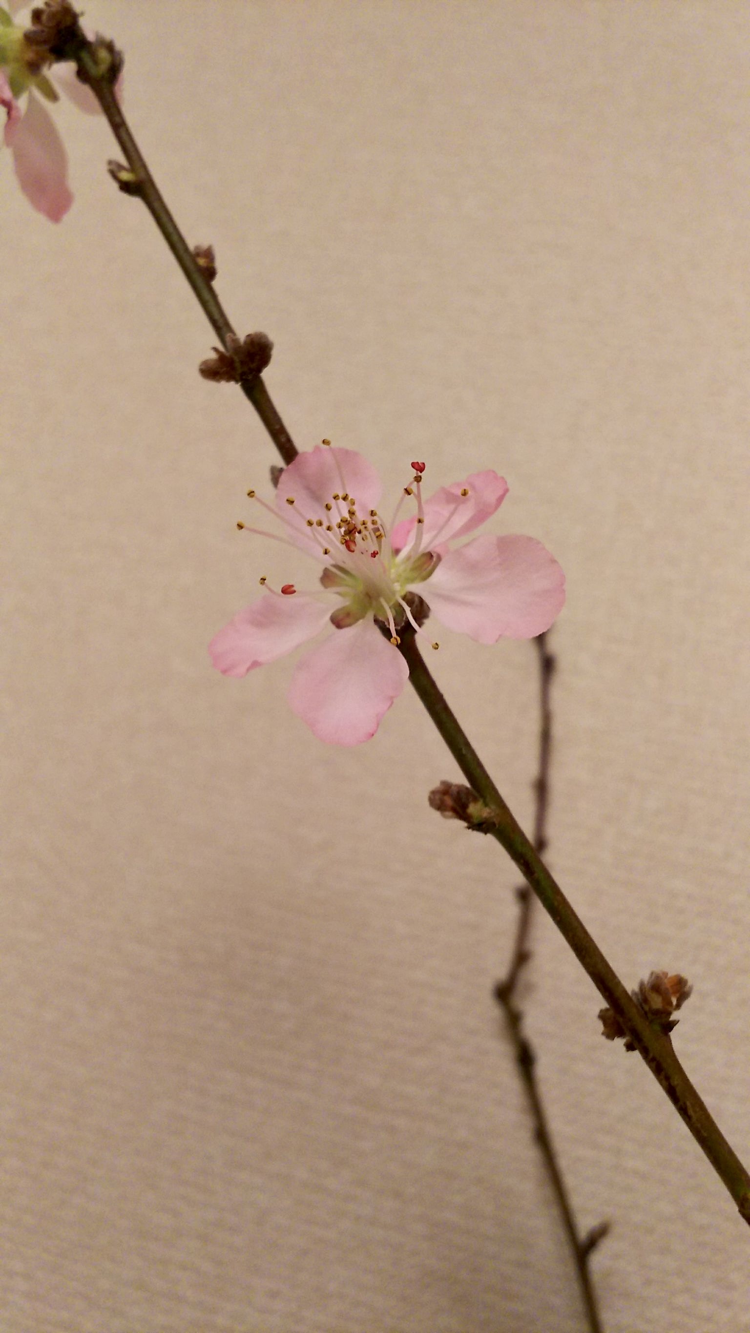 桜かな~と思ってるのですが、早咲きの桜で調べたら啓翁桜?というのでしょうか。